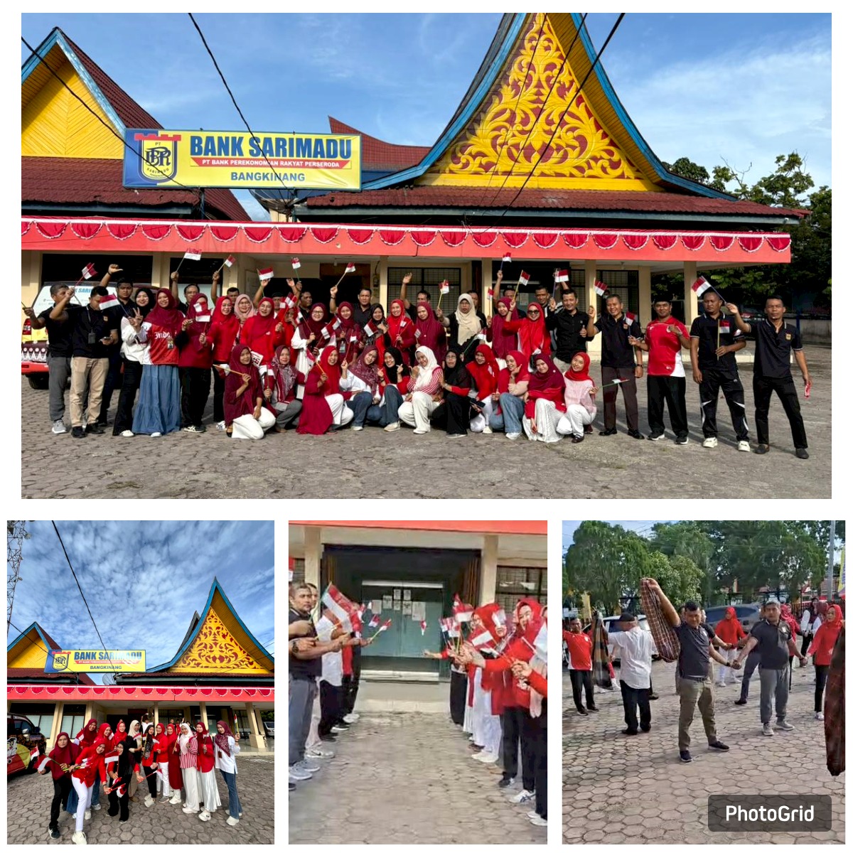 Acara DIRGAHAYU RI Ke 80 di Halaman Kantor Pusat Bank Sarimadu di Jln. DI Panjaitan no. 96 Bangkinang. Pada tanggal 15 Agustus 2025.