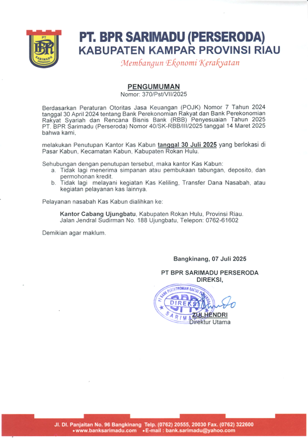 PT BPR Sarimadu Perseroda Berizin dan diawasi oleh Otoritas Jasa Keuangan (OJK) dan merupakan peserta Penjaminan LPS